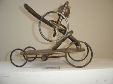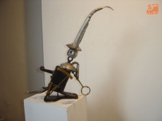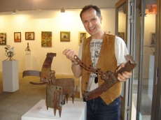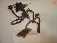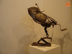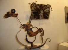 Todos los materiales que utiliza son reciclados porque, él nos explica, añaden el valor de la espiritualidad de quien los ha usado antes, cargando de fuerza expresiva la escultura.