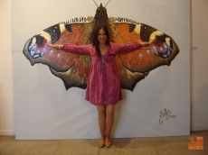 Hay que destacar la mariposa gigante que preside la sala, en la que la artista ha tratado de utilizar pigmentos que produzcan en el espectador la sensación de tener delante una mariposa que si se toca, perderá sus escamas de color.
