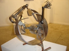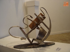 Para él, en esta exposición conjunta, la obra de María Jesús representa el amor y la suya el metal, de ahí el nombre, una constante en sus trabajos. Piensa que ambas combinaciones funden lo orgánico y lo inorgánico de su arte, conceptos que lleva hasta el límite en cada una de sus obras, combinando la línea recta y el metal, como símbolos de la parte inorgánica de la vida y las curvas y la madera como representaciones de la parte orgánica y pasional.