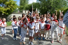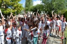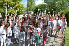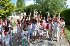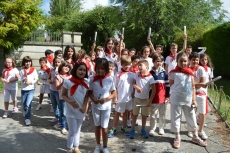 "¡A San Agustín venimos... porque es nuestro patrón...!" Así cantaban los alumnos del Campus estival de inglés del Colegio San Agustín este lunes para celebrar sus particulares 'sanfermines' o 'sanagustines', como ellos presumen decir.