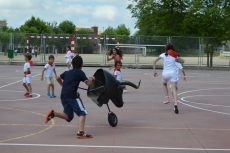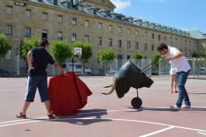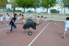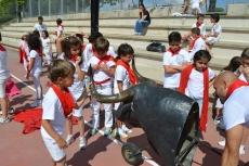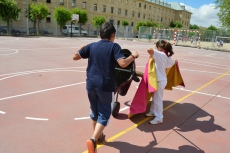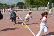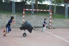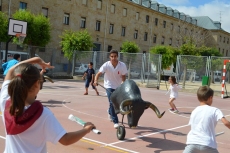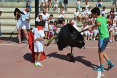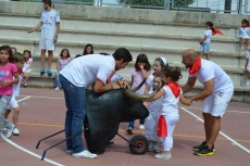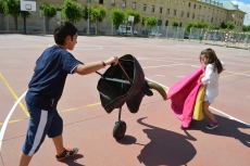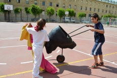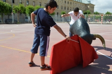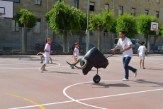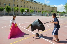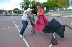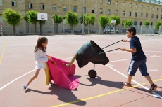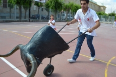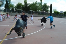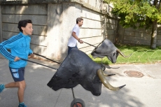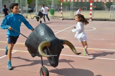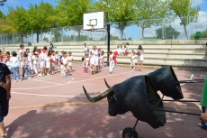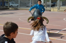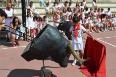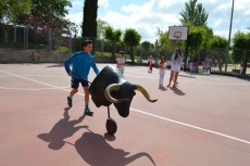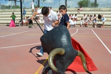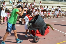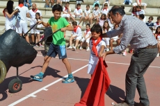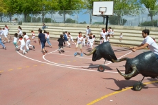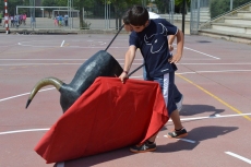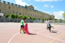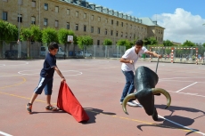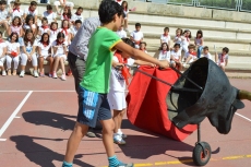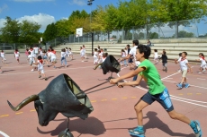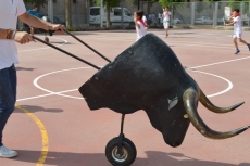 Después de una sesión de vídeo y toreo de salón con las "toras" (las cabezas de toros transportables), ha llegado el momento cumbre de la jornada, donde ha estallado la alegría colectiva: el encierro alrededor del colegio, por los carriles de sombra, así como el posterior toreo en las pistas rojas.