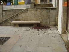 En la mañana del domingo, paseando por la Calle Mayor, al pasar por la Plaza del Solano, un montón de cerezas en el suelo llamó mi atención y la de cuantos pasaban por allí. Todo el mundo se paraba ante esas cerezas esparcidas por el suelo, sin que ningún recipiente roto o ningún cerezo cercano delatara el origen de tan curiosa aparición.