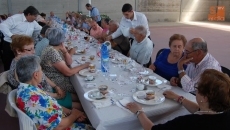 Más tarde, todos se desplazaron hasta el pabellón multiusos municipal para compartir mesa y mantel en la comida ofrecida por el restaurante España de este municipio. Los asistentes disfrutaron del embutido ibérico de la tierra, unas sabrosas carrilleras, flan, helado, café y bebidas. No faltó la música de flauta y tamboril amenizada por los mayores de la sierra. El acto del pabellón culminó con la entrega de placas y obsequios a los matrimonios que este año cumplen sus Bodas de Oro. Este año fueron quince parejas casadas en 1.964.