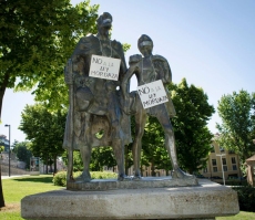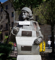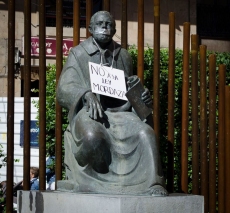 Diferentes estatuas de personajes relevantes de la ciudad han sido retocadas con diferentes carteles bajo el lema 'No a la ley Mordaza' mostrando así la disconformidad de determinado sector de la población.