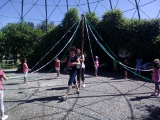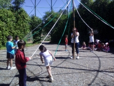 El miércoles, los niños se iniciaron en los bailes charros, ayudados por una madre voluntaria que se ofreció para enseñar a bailar la botella y trenzar el palo con las cintas.