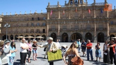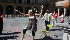 Esta calurosa mañana de domingo se produjo la ruta turística y teatralizada denominada 'Descubre el arte'. El evento comenzó a las 12.00 horas en la Plaza Mayor de Salamanca, pasando por la plaza Poeta Iglesias, el palacio de La Salina y el palacio de San Esteban, entre otros.