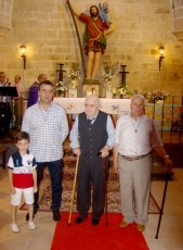 Tras la misa de cofrades oficiada en la eremita Virgen del Árbol, Ángel Pablo Calles Juan, que durante el último año ha ostentado la Mayordomía del Patrón, hizo entrega de la vara de mayordomo a Francisco Javier Moro Criado, cargo que ocupará por un año con Alonso Calderón como ayudante.