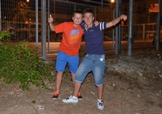 Nada más acabar la exhibición, los cabezudos salieron a las calles en persecución de los numerosos chavales que había por el barrio, buena parte de los cuales tenían a sus padres tomando algo tranquilamente en las terrazas del barrio en una noche algo menos calurosa que las anteriores en Ciudad Rodrigo.