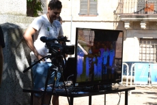 Gracias a ella, los que fueron poniéndose delante del fondo verde tuvieron la oportunidad ?sin moverse ni un milímetro- de montarse en una nave espacial, entrar en una sala de cine o adentrarse en El Dorado. A los más pequeños les llamó mucho el cambio de escenarios, que podían ir siguiendo gracias a una pantalla instalada en el propio escenario de la Plazuela.