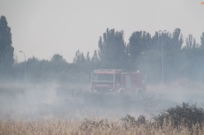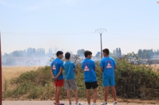 Una dotación de Bomberos ha tenido que intervenir a primera hora de la tarde para sofocar un incendio originado en una amplia superficie de maleza entre la urbanizacion Veralux y la zona de Las Nieves, en Santa Marta de Tormes, horas antes del inicio oficial de las fiestas patronales.