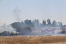 Una intensa humareda era visible en toda la localidad a consecuencia de un incendio que ha calcinado parcelas de maleza. La Policía Local cortó los accesos para evitar la entrada de vehículos mientras la dotación de Bomberos, ayudada por la colaboración de los vecinos, apagaba el incendio, avivado a ratos por las rachas de viento.