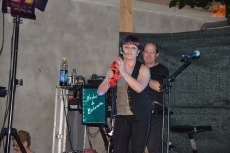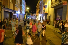 El protagonismo de la noche correspondió al grupo Noches de Bohemia que ofreció una larga actuación, con canciones para todas las edades. A la par, por las calles del barrio volvieron a correr los cabezudos, que dieron mucho juego, probándose las cabezas gigantes también unos cuantos mayores.