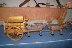 VILLORUELA | Grandes exposiciones en el multiusos Bernardo Cuesta Álvarez, de muñecas antiguas y carros de labranza en miniatura