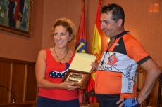 Tras dejar sus bicis aparcadas junto a los cañones situados a las puertas de la Casa Consistorial, parte de los ciclistas ?otros directamente se fueron a refrescarse a un bar- fueron recibidos en el Salón de Plenos del Ayuntamiento mirobrigense por la concejal de Deportes, María José Ramos, a quién hicieron entrega de una placa de agradecimiento. Durante la recepción, los ciclistas comentaron que es la segunda ocasión en la historia en que la Ruta a Extremadura en Bici llega hasta Miróbriga.