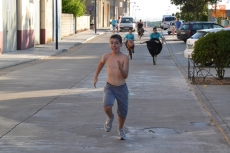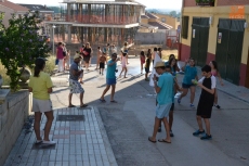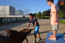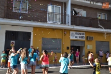 Así, poco a poco, vecinos de diferentes puntos del barrio refrescaron a los chavales arrojándoles barreños de agua, globos, botellas, o sacando una manguera. En ese recorrido por las calles los chavales también recogieron dos globos de gran tamaño.