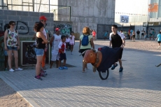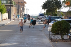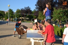 El pasacalles concluyó en el parque recreativo de la parte trasera del barrio. Tras unos minutos de descanso, comenzó otra de las actividades que no puede faltar en las fiestas del Valle de San Martín: los encierros de carretones. El primer encierro comenzó en la calle Bailén para dirigirse también a la zona del parque recreativo, donde continuó durante un buen rato, para sorpresa del Club de Amigos de la Bici de Navalmoral de la Mata, que se preparaba para hacer noche en la sala multiusos del barrio. Después de cenar, hubo una concurrida sesión de cine en el frontón.