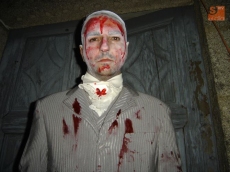 El ambiente impresionaba, aún antes de que todo comenzara, los ataúdes y las lápidas del improvisado cementerio esperaban al enterrador, mientras las puertas de la capilla se batían movidas por una ráfaga furtiva, como invitando a asomarse a la tranquilidad de su interior.