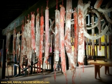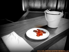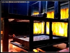 Y de carne, claro está, en casa chacinera no puede obviarse la evidencia, el buen embutido, manjar de reyes y regalías, que el tío Pedro sacaba de las entrañas del hogar a base órdenes y contraórdenes y buen hacer y buen saber y oído avizor para cerrar ventanas y contraventanas a las notas del sereno que avisaba de la llegada del "hostigo", ese viento que fue ideado en alguna sierra como esta, mitad aire mitad agua.