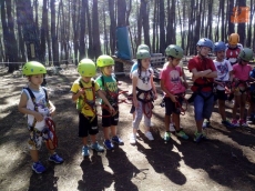 Los niños se divirtieron en un circuito entre árboles con cuerdas sujetos con un arnés, bajada en tirolina y muchas más actividades.