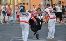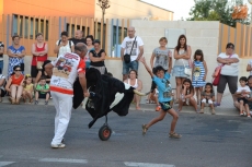 En primer lugar, se celebró el esperado encierro, que dio paso a una exhibición de recortes, donde todos los chavales que lo desearon pudieron hacer cortes y quiebros a los astados, viviéndose algunos momentos de 'apuro', ya que en varias ocasiones los astados se arrancaron a correr tras los chavales. Los más valientes se atrevieron incluso con los saltos.