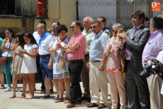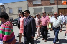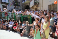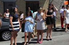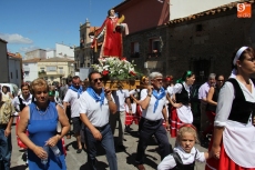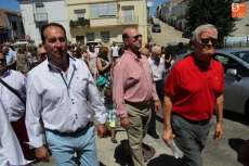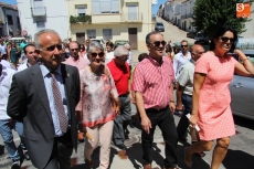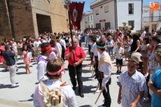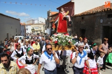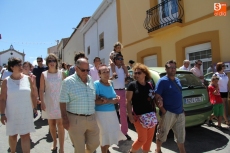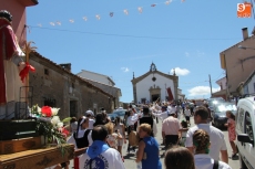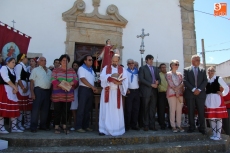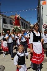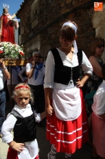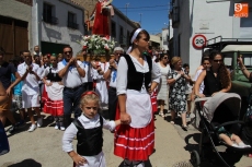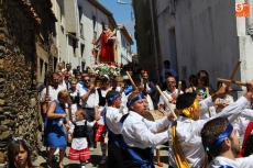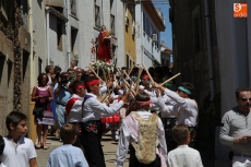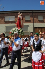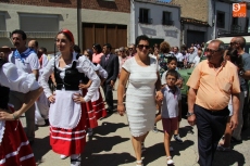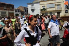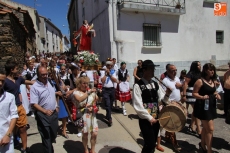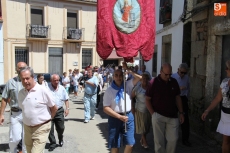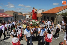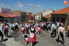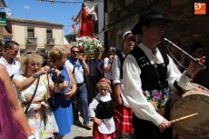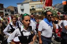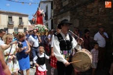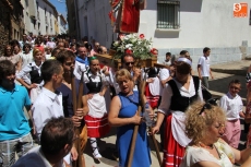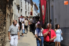 A la finalización de la Eucaristía, el Patrón salía de la iglesia para ser portado a hombros durante la procesión de camino a su ermita, acto que estuvo amenizado por las danzas de paleos y al que las chicas del cordón imprimieron mayor colorido. Concluidos los actos religiosos bajo gritos de ¡viva San Lorenzo!, los vecinos se trasladaron hasta la plaza del pueblo para presenciar la interpretación del baile del cordón, danza recuperada en 2012 después de más de 20 años sin que se interpretara en esta localidad.