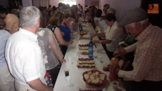 Después de los ritos cristianos, los vecinos estaban invitados a un vino de honor en los Salones de la Tercera Edad. Allí, saborearon productos de la tierra regados con vino y refrescos.