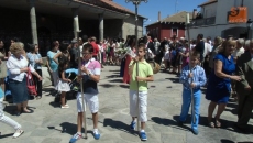 Cientos de fieles arroparon esta mañana a la Virgen de la Asunción en Linares de Riofrío durante los actos religiosos de esta mañana. Vestidos con sus mejores galas, los vecinos acudieron a la celebración de la santa misa en la iglesia dedicada a la patrona. El acto estuvo presidido por la Reina y las Damas de las Fiestas junto a sus acompañantes, así como la Corporación municipal que preside Ignacio Polo, y el diputado provincial, Eloy García. Las quintas acudieron con sus vestidos de fiesta y mantilla, para ofrecer sus ramos a la Virgen.