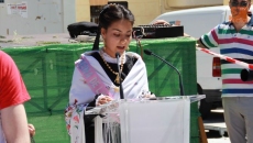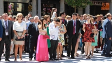 Al llegar a la Plaza Mayor, los porteadores se colocaron en la parte de abajo del ágora, junto a la instalación para colocar las flores de la Ofrenda Floral. Uno a uno, los diferentes grupos y vecinos depositaron los ramos a los pies de la Virgen de la Asunción. Tampoco faltaron los agradecimientos en la voz de representantes de los distintos estamentos de la Villa, como la Reina de las Fiestas 2014, la joven Laura Díaz Venancio.