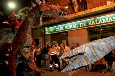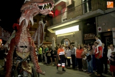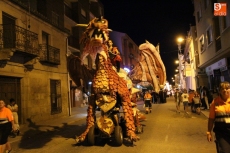 Los niños de Vitigudino encabezaban el desfile con las banderas del mundo, a los que seguían dos figuras móviles, uno de ellos un dragón que de vez cuando lanzaba una llamarada de fuego. Esta fue la única atracción contratada por el Ayuntamiento que hizo arrancar alguna exclamación a los cientos de personas que esperaban su desfile de carrozas, por lo que la sorpresa fue completa.