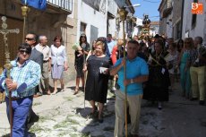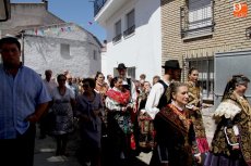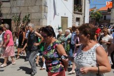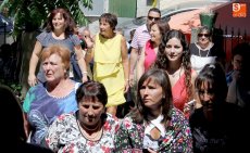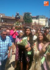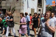 Los mayordomos Fernando Corral Machado y Natividad Campos Hernández, junto con el resto de la familia, guiaron a San Roque por entre las calles de Villarino durante la procesión en honor al Patrón en este día grande las fiestas, en esta ocasión con sus balconadas adornadas con matillas y calles que amanecían bajo el aroma a tomillo y hierbabuena.