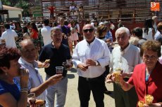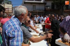 Con el Patrón de regreso en sus aposentos de Santa María la Mayor, los vecinos regresaban a la plaza para dar cuenta del convite de chochos, aceitunas y sangría ofrecido por el Ayuntamiento, evento al que seguirá esta tarde una carrera de 'autos locos', la actuación del Trío Musical en la plaza del Sagrado y una verbena amenizada por el grupo La Huella.