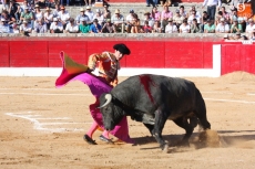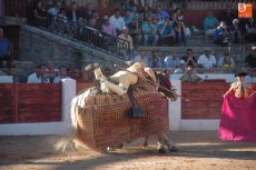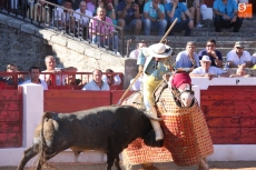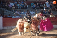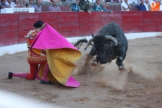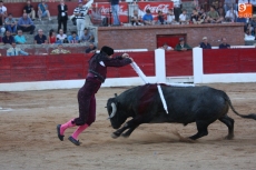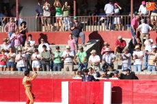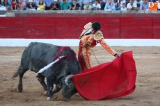 Con dos orejas en el haber, el tercero de la tarde alborotó los tendidos tras que desmontara a uno de los picadores. Fue el más complicado de la corrida, aunque el torero aún así le arrancó alguna tanda de derechazos, con susto incluido, pero sin más consecuencias. Tampoco tuvo tino con la espada, hubo de entrar a matar tres veces tras un pinchazo, un pinchazo hondo y media, para acabar con el de Las Tiesas con el de cruceta a la primera.