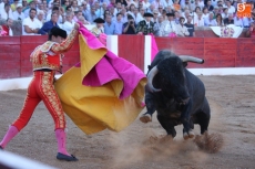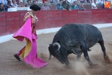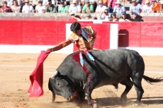 La corrida entraba en su culmen con el quinto de la tarde, ese que dicen que siempre es bueno, pero Mojamo, herrado con el número 6, solo tenía un pintón bueno, el izquierdo, que lo vio enseguida el torero, pues fue en el único de la tarde con el que comenzó la faena con la mano izquierda. Y por ese pitón cuajó buenas tandas de muletazos a pesar de que el toro quedó demasiado picado, tres puyazos que pararon al de Victorino en exceso y que motivó que la faena con la muleta fuera de más a menos, pues el toro acabó parándose, tanto que cuando el torero lo intento con la derecha apenas si el toro tenía fuelle. Cortó dos orejas más después de una estocada ligeramente tendida y atravesada, aunque no requirió de descabello.