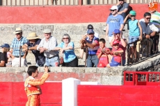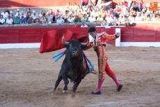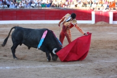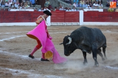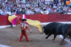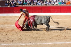 Con el sexto de la tarde se armó el lío. El Capea salió dispuesto a cuajar como fuera el último de la tarde. Se le vio más torero que en los anteriores, y ya desde el capote, pues además de torear bien a la verónica hizo un quite por chicuelinas con el que se metió al público debajo de la talegilla. Con la muleta toreó bien con ambas manos y con cadencia, el toro repetía, aunque ya se desplazaba menos, pero repetía y repetía con pases por abajo y naturales, hasta que el torero decidió deshacerse de la ayuda para clamor del buen toreo.