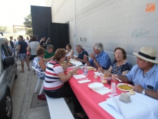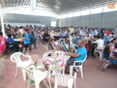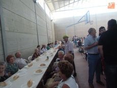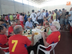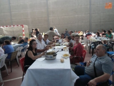 Las mesas, se extendieron por todo el pabellón y en las sombras exteriores, para que los comensales disfrutaran de una comida de confraternidad que aunó a todo el pueblo, aunque también recalaron personas de otros municipios.