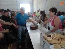 Mientras los grupos de familias y peñas terminaban de acomodarse, la charanga animó la espera hasta el reparto de comida. Los mayores también fueron los encargados de repartir la paella, pan y sangría, así como un refrescante helado.