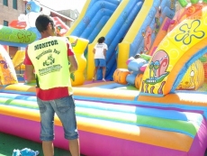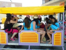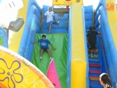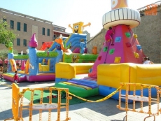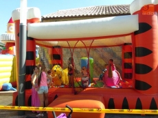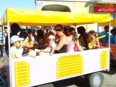 Entre ellas había numerosos hinchables alrededor de la Iglesia, así como un rocódromo, un simulador de Fórmula 1 y otros juegos de fútbol y baloncesto. Sin embargo, la actividad que más expectación ha despertado ha sido el tren turístico, al que se subían familias enteras e incluso los integrantes de algunas peñas, que hacían los trayectos mucho más divertidos.
