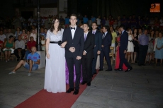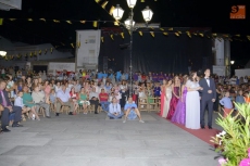 Después, toda la comitiva se trasladó hasta la Plaza Mayor, dónde el alcalde, Carlos Parra, anunció el nombre de la nueva Reina de las Fiestas, Carmen Pérez, quien recibió de manos de la anterior la banda y la corona. A continuación, Carmen Pérez le fue poniendo a cada una de sus damas sus bandas. Los niños fueron los encargados de darles los ramos de flores y unos regalos.