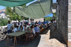 Luego vinieron conciertos de rock y swing y verbenas pachangueras, impensables partidos de fútbol entre solteras toreras y casadas malvadas, juegos de cartas, actuaciones para los más pequeños como la que ofrecieron el dúo Chirimbamba, desfiles de carrozas y disfraces, procesiones en honor de su patrona la Virgen de los Remedios, misas?y así hasta llegar, como no podía ser de otra forma en las fiestas de vecinos bien avenidos, a bailar la conga, eso sí, después de dar buena cuenta de una gigantesca paella para casi 400 comensales.