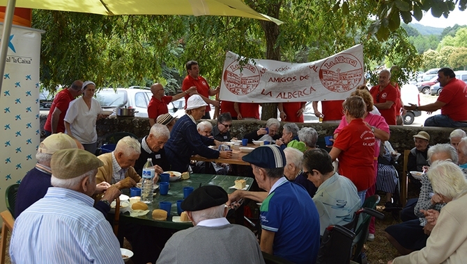 Con la mirada ya puesta en unas próximas fiestas, los integrantes de la Asociación Cultural 'Amigos de La Alberca' celebraron este lunes una comida de hermandad en la que no faltó de nada. Pequeños y mayores disfrutaron de los productos serranos y un buen guisado de carne con patatas en la ermita de San Blas, y bajo la animación de la charanga La Bomba.