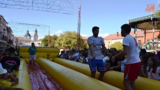La tarde se iniciaba el la Plaza de España de la mano de la Gymkana, que este año contaba con menos peñas participantes que las inscritas para ella. Diferentes pruebas hinchables extraídas del juego Humor Amarillo formaron un circuito desarrollado por concursantes de 18 peñas y que dejaron momentos simpáticos.