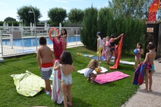 Concluido el 'trabajo' en el huerto, los chavales disfrutan cada mañana de un snack saludable antes del momento más esperado: el chapuzón en las piscinas del complejo. Supervisados en todo momento por un socorrista -además de por las monitoras de Siega Verde Park- los niños se lo pasan en grande en el agua. Fuera de ella tienen su propia zona para extender sus toallas y tomar el sol.