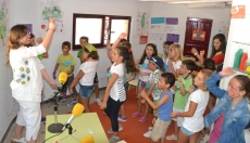 Por última vez durante este verano, los chavales fueron pasando por los distintos centros de actividades: la zona de juegos, la de conocimientos, la de manualidades y el taller de Radio La Glorieta, que realizó sus últimas emisiones desde el interior del templete.