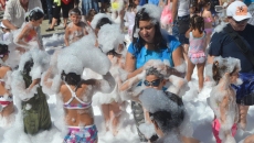 La mañana también dejaba momentos especiales en el Parque La Huerta donde un año mas el Centro Integral Deportivo celebraba la fiesta de al espuma en la que mas de 200 niños disfrutaron recibiendo un buen baño, al que se unieron familiares y amigos, lo que dejaba instantáneas curiosas y divertidas que año tras año son protagonizadas por mas pequeños.