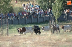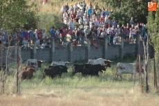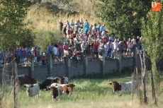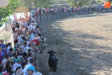 Varios miles de personas asistieron este viernes al 'Prao' del Rocoso para presenciar el tradicional desenjaule de las reses que serán lidiadas los próximos días en los distintos festejos taurinos organizados con motivo de las fiestas en honor a San Bartolomé. Y es que, en Las Arribes, cuando se trata de toros no hay plaza, calle o rincón sin afición. Como dice el tópico: 'hasta la bandera'.