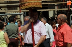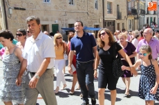 Con una gran solemnidad, los vecinos de Aldeadávila acompañaron este domingo al Patrón en el día grande de las Fiestas del Toro, celebraciones en honor a San Bartolomé y con una mañana protagonizada por los actos religiosos.