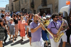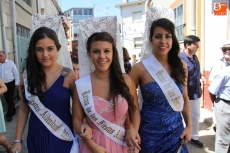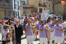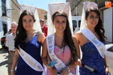 Amenizada por la charanga La Clave y concluida la misa, la procesión partió con la imagen de 'San Bartolo' a hombros de las mujeres y precedida de la Corte de Honor, formada este año por Ana Blanco Martín, en el papel de reina; y con Blanca Vicente González y Rocío García de la Iglesia como damas; así como de distintas autoridades eclesiásticas, civiles y militares. Entre ellas se encontraban el párroco Alberto Holgado; el alcalde de la localidad, Santiago Hernández, y el teniente de alcalde Miguel Alegría, ambos empuñando las varas de mayordomos en representación de la Corporación municipal, y que estuvieron flanqueados por los comandantes de puesto del Cuartel de la Guardia Civil de Aldeadávila, y acompañados por distintos miembros del Ayuntamiento.