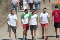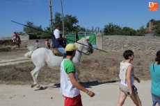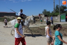 En esta ocasión no hubo sobresaltos, aunque sí algún susto debido a la imprudencia de algunos corredores al hacerlo demasiado cerca de los caballos, como sucedió en la zona de entrada al recorrido urbano, donde un aficionado estuvo a punto de ser atropellado por una montura. Conforme a la hora anunciada salían de la finca los cinco novillos de Lorenzo Rodríguez 'Espioja' para su encierro en la plaza de cara al festival taurino de esta tarde. Los caballistas no se anduvieron con contemplaciones, y desde un primer momento imprimieron una mayor velocidad a la manada para que ninguno de los astados pudiera pensar demasiado.