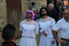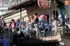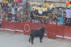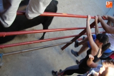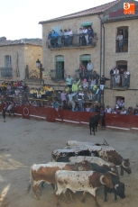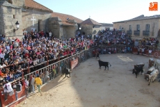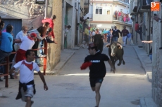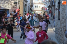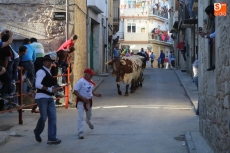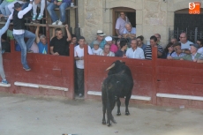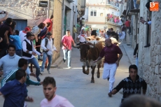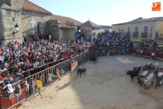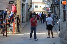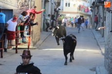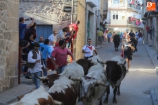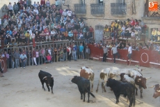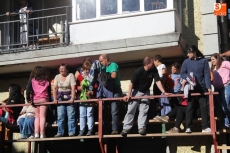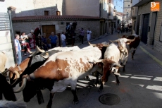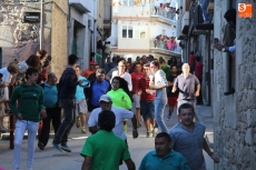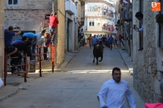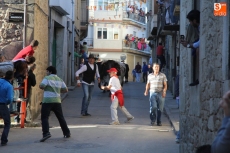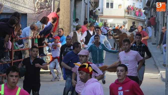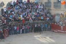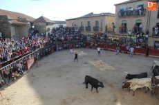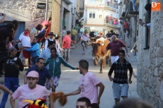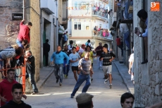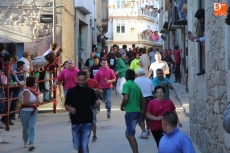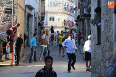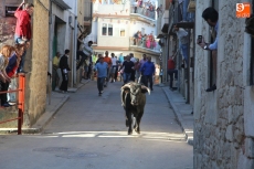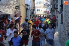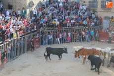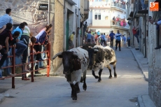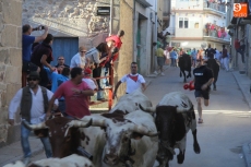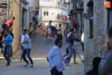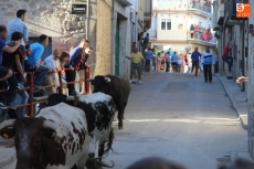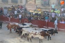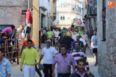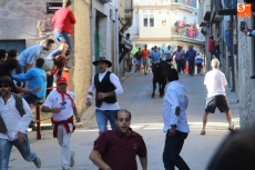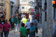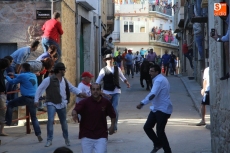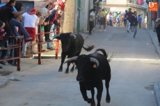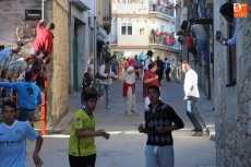 La entrada a toriles fue tan complicada como la llegada de la manada a la plaza. A poco que alguien se moviese allí estaba la embestida de alguno de los de Santos Alcalde. Fueron entrando de uno en uno gracias al trabajo de los encerradores y, en especial, de Ángel, el famoso encerrador de San Felices, que demostró su experiencia en estos casos al requerir al resto de encerradores y aficionados que no molestasen al último novillo y a los mansos, y así, solos, se dirigieron a los corrales, dándose por concluido un primer encierro en el que no faltó la animación de las peñas y de la charanga La Clave.