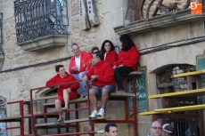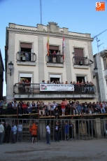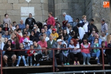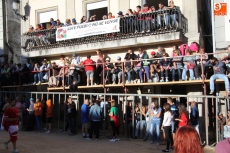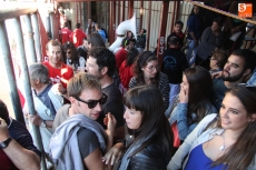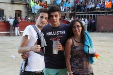 Habían pasado 40 minutos de las nueve, hora anunciada para el encierro y en el que se procede a la salida de la manda desde el 'prao' del Rocoso, y el encierro tomaba los mismos tintes que el del día anterior. Pero para divertir al personal durante la estaban las peñas y La Clave, además de un animado vecino que cantó a capela desde el medio del coso y que acabó con el 'tú sí que vales' lanzado desde los tendidos.